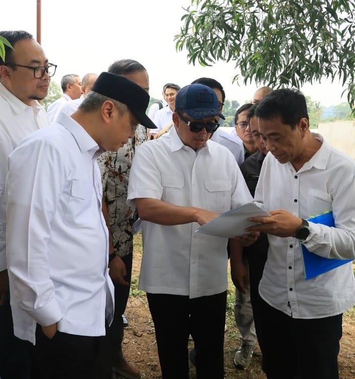 JAKARTA, HARIANHALUAN.ID – Menteri Agraria dan Tata Ruang/Kepala Badan Pertanahan Nasional (ATR/BPN), Nusron Wahid bersama Menteri Perhubungan, Dudi Purwagandhi melakukan peninjauan lahan yang diperuntukkan sebagai jalan akses ke Stasiun Kereta Cepat Indonesia China (KCIC) Karawang, Selasa (25/2/2025).