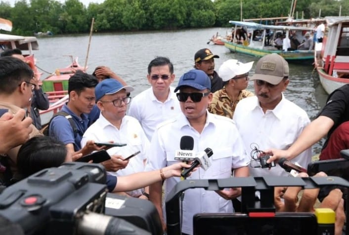BEKASI, HARIANHALUAN.ID – Menteri Agraria dan Tata Ruang/Kepala Badan Pertanahan Nasional (ATR/BPN), Nusron Wahid meninjau lokasi terbitnya sertifikat Hak Guna Bangunan (HGB) di atas laut yang berada di Kabupaten Bekasi, Selasa (4/2/2025).