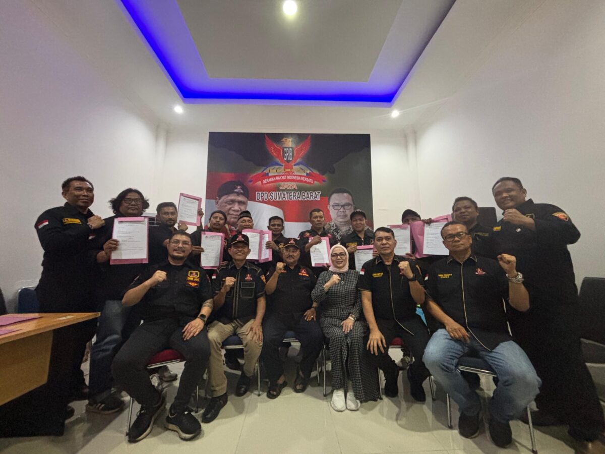 PADANG, HARIANHALUAN.ID — Ketua DPD GRIB Jaya Sumbar Amril Amin S.AP, MM., menyerahkan SK defenitif kepengurusan DPC GRIB Jaya untuk 16 kabupaten kota di Sumatera Barat Kamis (27/2) di Kantor DPD GRIB Jaya Sumbar.