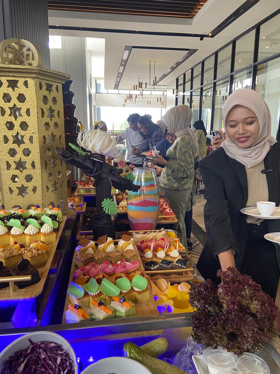 “Berbagai hidangan khas Nusantara dan Timur Tengah tersedia dalam paket ini, termasuk aneka takjil, chocolate fountain, aneka minuman es, fruit station, aneka cake, nasi mandi, wheel cheese-grana padano, giant whole tuna, pop corn, pojok gorengan, dan chicken shawarma,” ujarnya, Kamis (27/2).