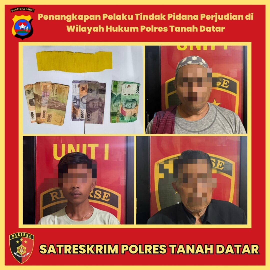 Kronologis penangkapan berawal dari penyelidikan Satuan Reskrim Tanah Datar dan mendapati tiga orang tersangka sedang bermain judi kartu ceki.