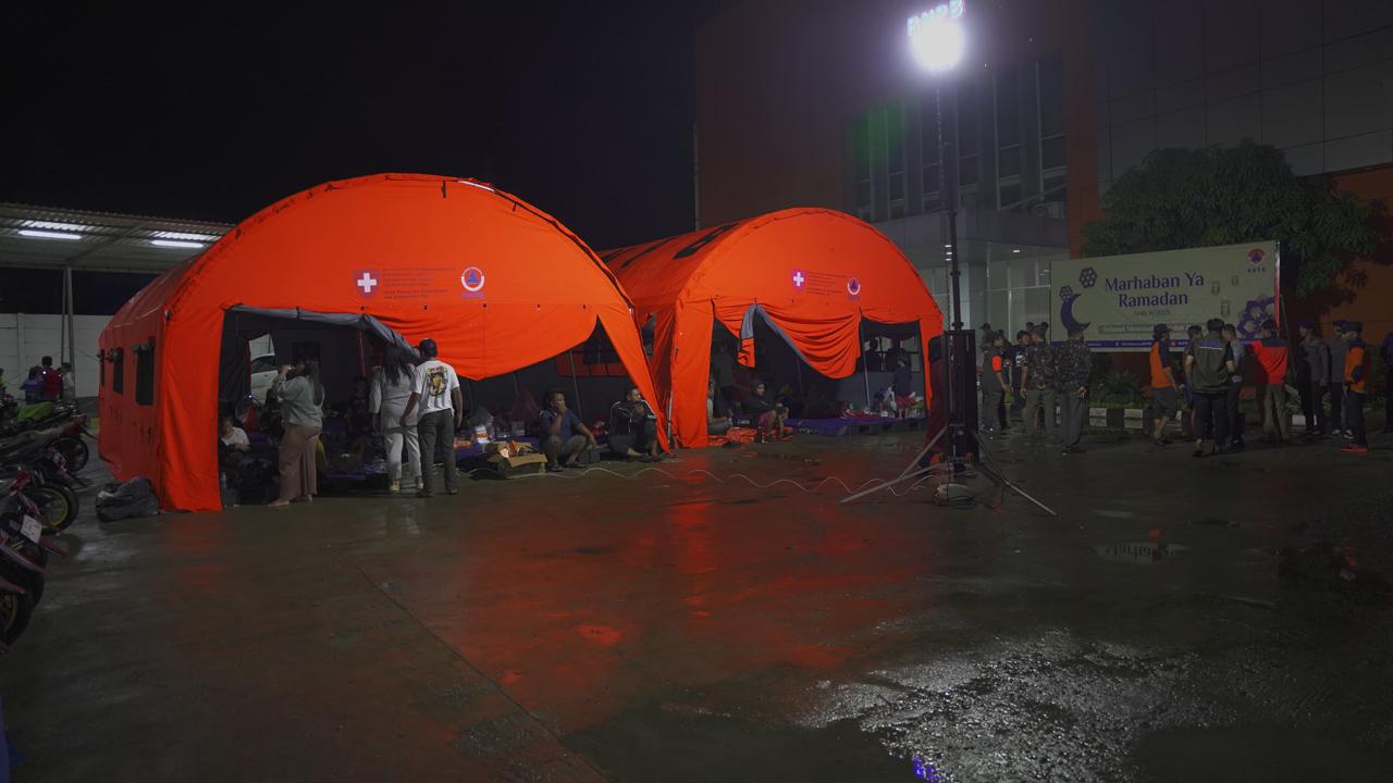 Hingga Selasa (4/3) malam, terdapat 297 kepala keluarga (KK) yang terdiri dari 600 jiwa yang mengungsi di pos pengungsian Gudang Logistik BNPB Jatiasih.