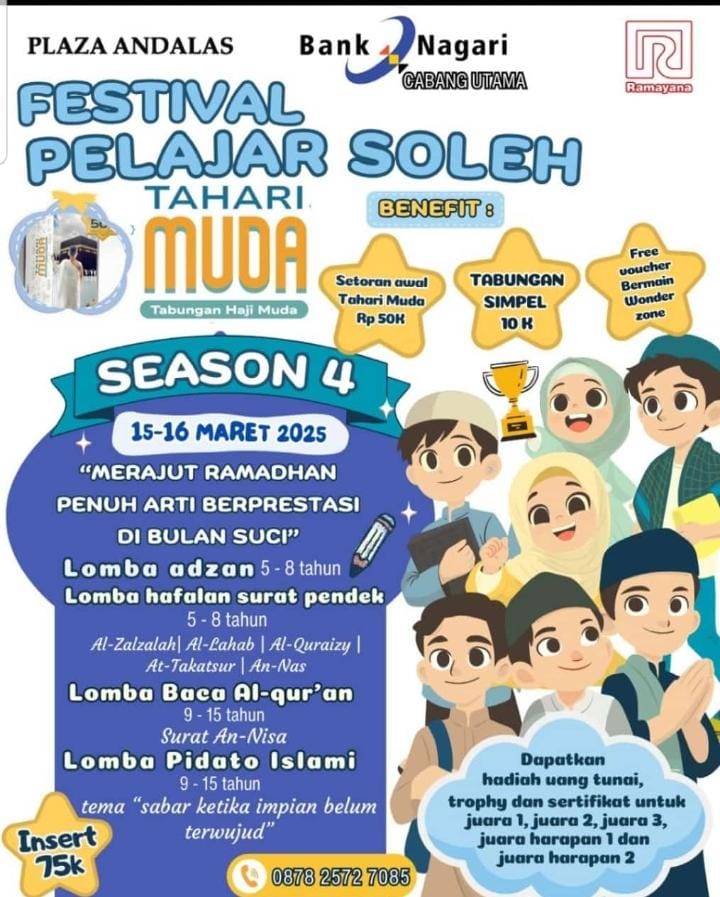 “Kegiatan ini akan digelar pada Sabtu-Minggu 15-16 Maret 2025 di Plaza Andalas, Padang. Tema yang diangkat adalah ‘Merajut Ramadhan Penuh Arti Berprestasi di Bulan Suci,” kata Oktra Firdaus.