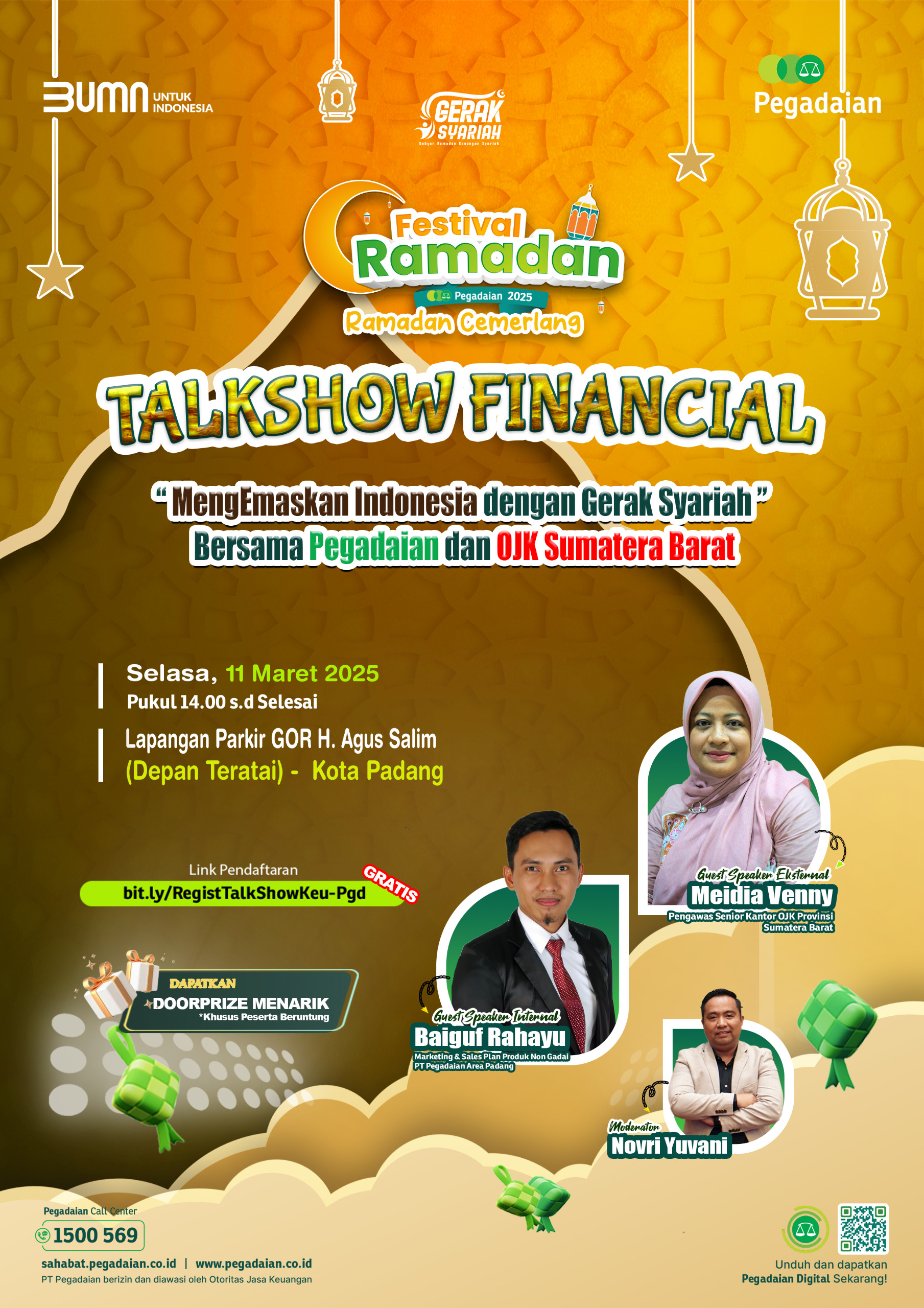 Marketing dan Sales Plan Produk Non Gadai PT Pegadaian Area Padang, Baiguf Rahayu menjelaskan ada tiga kegiatan inti festival ramadan kali ini. Yaitu Talkshow financial bersama OJK Sumbar, seminar emas dan seminar haji.