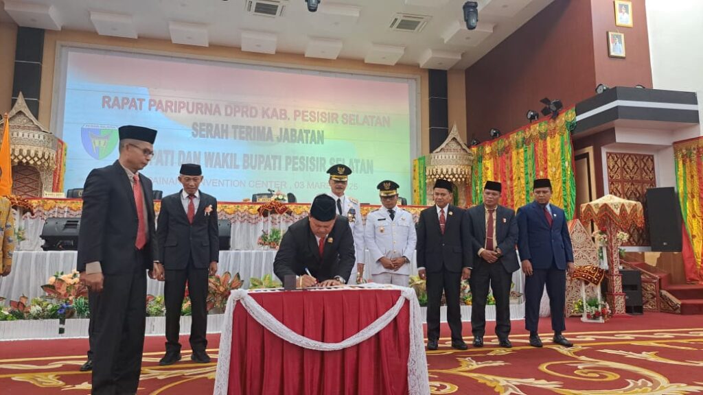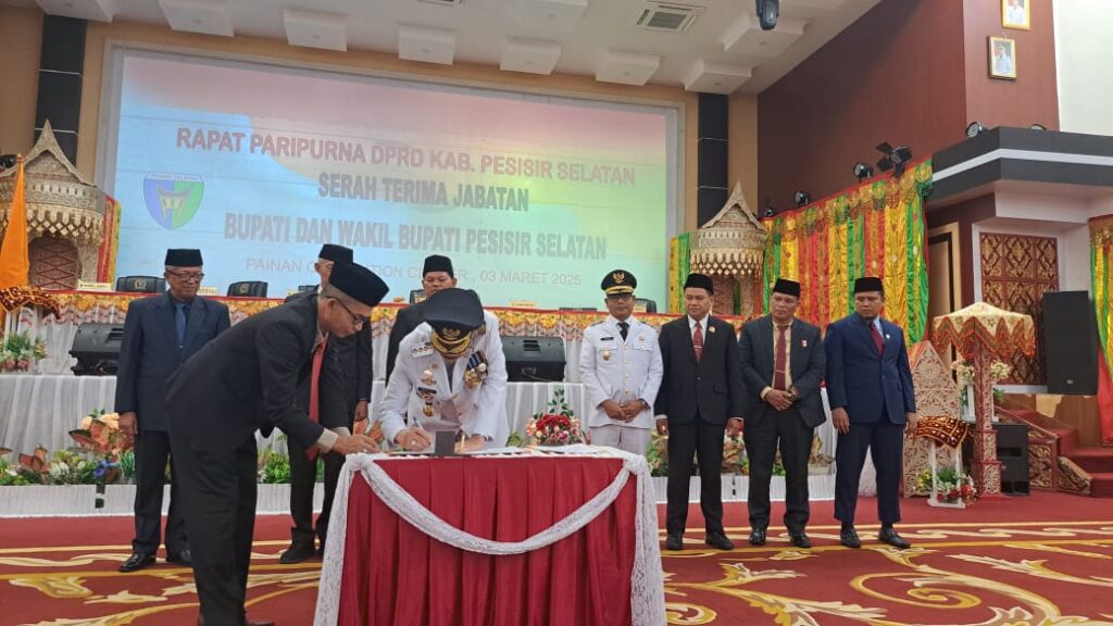 Usai rapat paripurna, dilakukan penyerahan dokumen memori Pesisir Selatan oleh Sekda Pessel, Mawardi Roska kepada Bupati Hendrajoni yang didampingi oleh Wakil Bupati Risnaldi Ibrahim. Serah terima ini, merupakan bagian dari proses transisi kepemimpinan dan menjadi simbol resmi atas peralihan kepemimpinan di Kabupaten Pesisir Selatan. Rangkaian acara ini berlangsung dengan tertib dan penuh khidmat.
