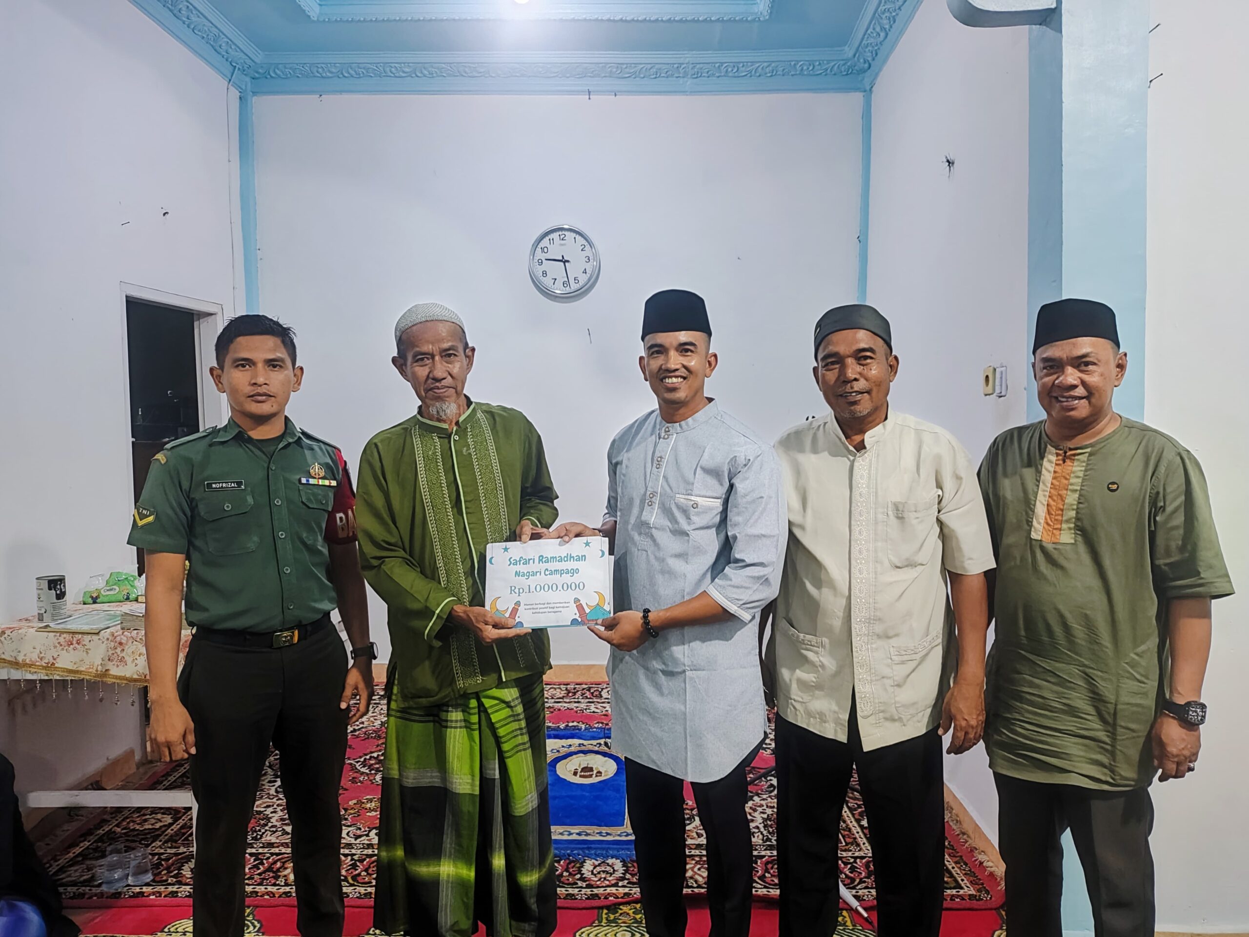 Kegiatan Safari Ramadan tersebut dihadiri langsung Wali Nagari Campago, Zulhadi Hadi didampingi jajaran perangkat nagari, Wali Korong, Badan Musyawarah Nagari (Bamus), Badan Usaha Milik Nagari (BumNag), serta Babinsa Koramil 06 Kampung Dalam, Serda Nofrizal.