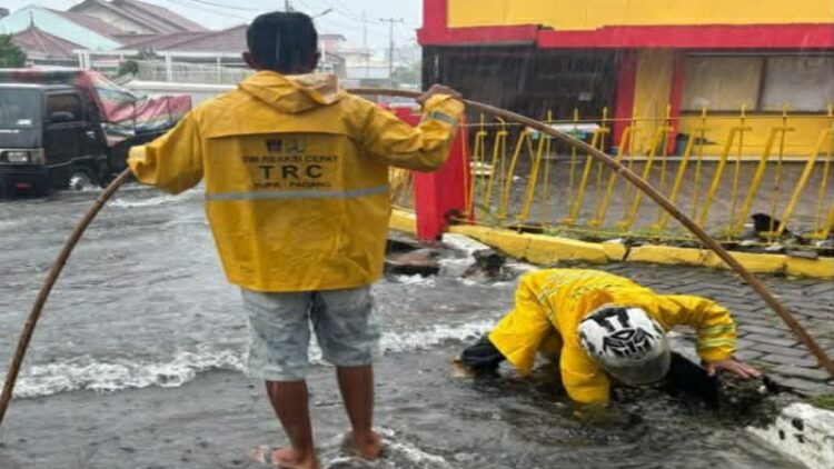 Kepala Dinas PUPR Kota Padang, Tri Hadiyanto, menjelaskan bahwa begitu hujan deras turun, pihaknya langsung menurunkan Tim Reaksi Cepat (TRC) untuk membersihkan lubang inlet drainase yang tersumbat.