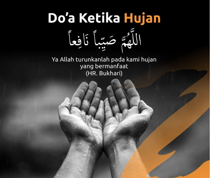 Artinya: “Ya Allah, turunkanlah hujan di sekitar kami, bukan untuk merusak kami. Ya Allah, turunkan lah hujan ke dataran tinggi, gunung-gunung, bukit-bukit, perut lembah, dan tempat tumbuhnya pepohonan.” (HR Bukhari)