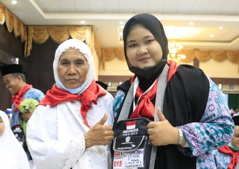 HALUANNEWS, PADANG – Setiap pemberangkatan calon jemaah haji (CJH) Embarkasi Padang ada yang menarik. Jemaah termuda dan tertua di setiap kloter menjadi perhatian tersendiri bagi jemaah sesama satu kloter.