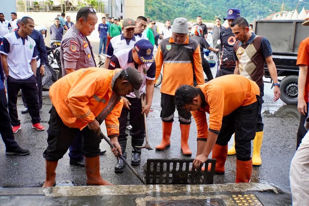 PADANG PANJANG, HARIANHALUAN.ID — Wakil Wali Kota, Allex Saputra bersama Pasukan Oranye (petugas kebersihan), Satpol PP Damkar, BPBD, dan PDAM melakukan aksi normalisasi selokan dan drainase di kawasan Pasar Pusat dan sekitar Jalan Imam Bonjol, Kamis (13/3).