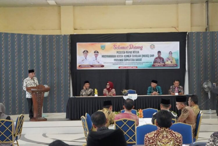 PADANG PANJANG, HARIANHALUAN.ID — Wakil Wali Kota, Allex Saputra membuka kegiatan Rapat Kerja Musyawarah Kerja Kepala Sekolah (MKKS) SMP Provinsi Sumatera Barat, di Aula Dinas Pendidikan dan Kebudayaan (Disdikbud), Sabtu (15/3).