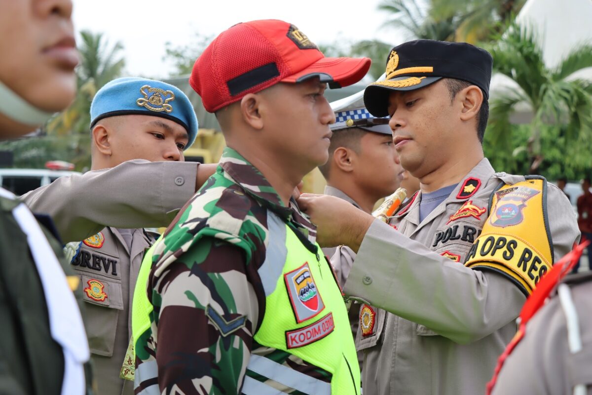 Keterangan Foto: Wakapolres sijunjung Kompol Deny A.H., S.I.K memasangkan tanda pita kepada personil Gabungan yang akan melaksanakan pengamanan Operasi Ketupat Singgalang 2025 dalam apel gelar Pasukan operasi Ketupat, Kamis (20/3) di Halaman Mapolres Sijunjung.