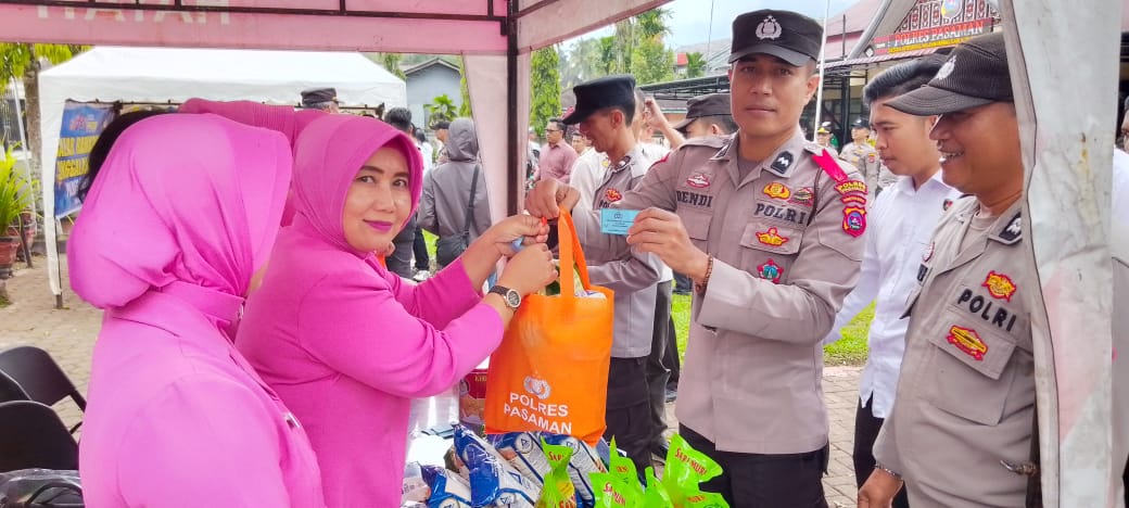 Personel Polres Pasaman sangat antusias dalam Bazar Ramadhan Polri Presisi kali ini, karena setiap anggota mendapat kupon promo sehingga dapat berbelanja lebih hemat.