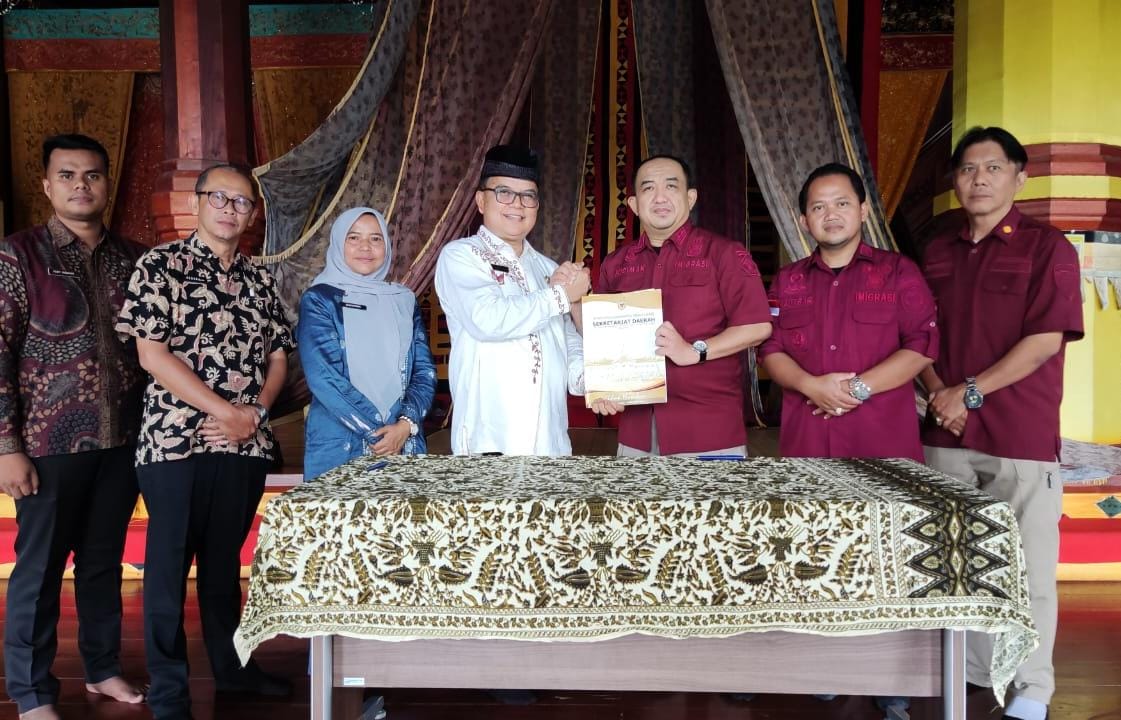 Tek Foto ; Kepala Kantor Imigrasi Agam, Budiman Hadiwasito bersama Kepala Dinas Pariwisata, Pemuda dan Olahraga Kab. Tanah Datar, menjalin kerjasama di Istana Pagaruyung, Kamis (20/3/2025).