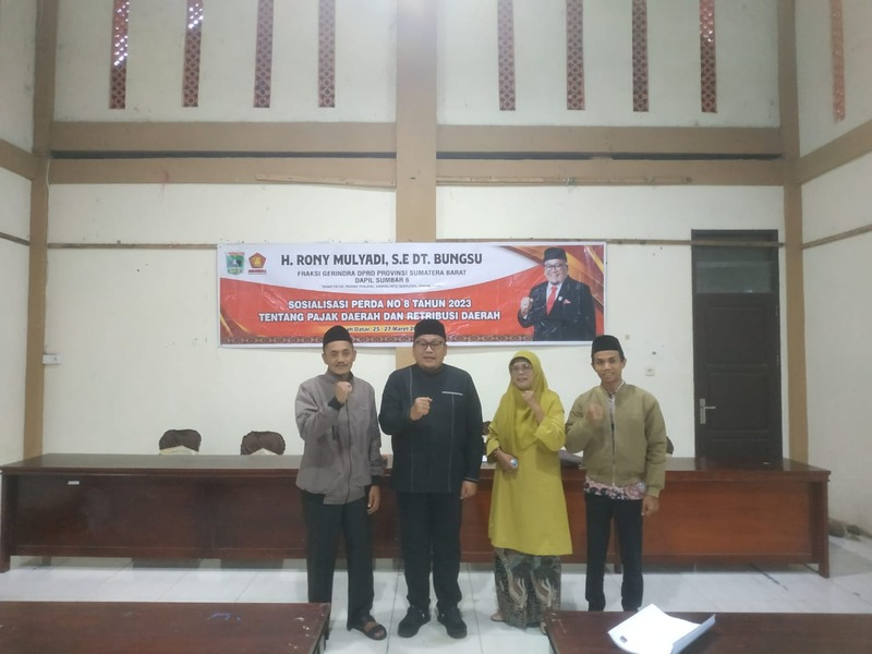 TANAH DATAR, HARIANHALUAN.ID – Anggota DPRD Provinsi Sumatera Barat (Sumbar) Faksi Partai Gerindra, Ronny Mulyadi Dt. Bungsu melakukan sosialisasi Peraturan Daerah (Perda) provinsi Nomor 8 Tahun 2023 tentang pajak dan retribusi daerah di Aula Kantor Camat Batipuh, Kamis (27/3/2025).