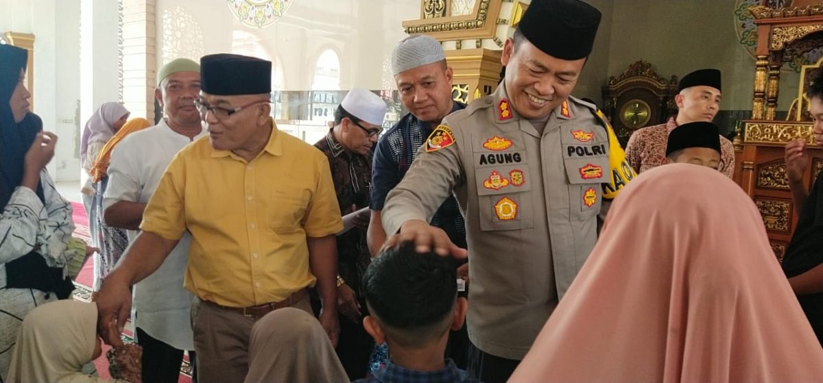 PASBAR, HARIANHALUAN.ID – Bupati Yulianto bersama Kapolres Pasbar AKBP Agung Tribawanto di penghujung Ramadan menghadiri safari Ramadan di Masjid Nurul Huda Bateh Uba Langgam Kinali, sekaligus melakukan peninjauan posko pengamanan lebaran di Pasar Tempurung dan menyantuni anak yatim di Masjid Nurul Huda Jambak Selatan, Minggu (30/3).