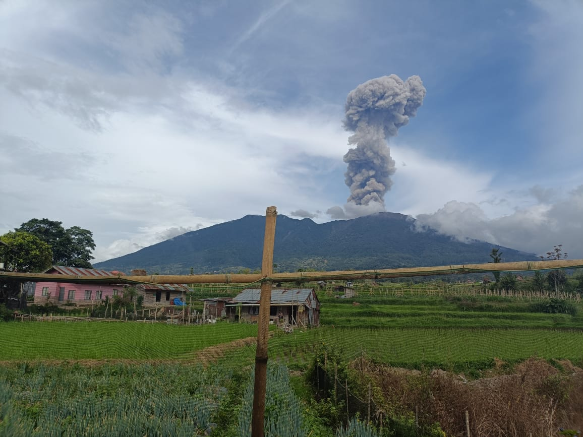 “Telah terjadi erupsi Gunung Marapi, Sumatera Barat pada tanggal 2 April 2025 pukul dengan kolom abu teramati 1.000 meter dari atas puncak dengan intensitas tebal condong ke arah timur laut,” katanya.