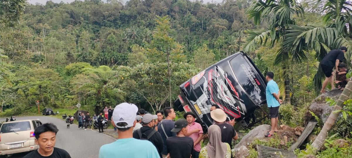 Camat Malalak Zulwardi Nursal mengatakan, peristiwa kecelakaan tunggal itu persis di lokasi bus ALS kecelakaan tunggal tahun lalu di tikungan tajam.