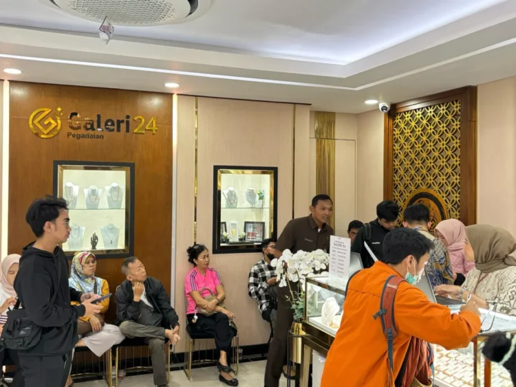 HARIANHALUAN.ID – Usai libur Lebaran Idul Fitri 1446 Hijriah, masyarakat berbondong-bondong berburu emas untuk berinvestasi, salah satunya di outlet Pegadaian Galeri 24 Cabang Salemba Jakarta, Selasa (8/4).