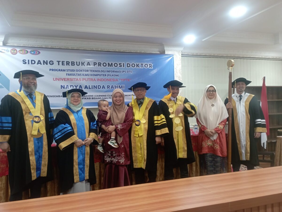 Nadya yang merupakan anak dari Sarjon Defit dan Rusdayetti Sy, SPd, MM (Kepala MIN 7 Padang) mempertahankan Disertasinya ” Pengembangan Model Machine Learning Classification Untuk Mengklasifikasi Bidang Ilmu Penelitian”. Dia dinyatakan lulus dengan predikat “Dengan Pujian (Cumlaude) “.