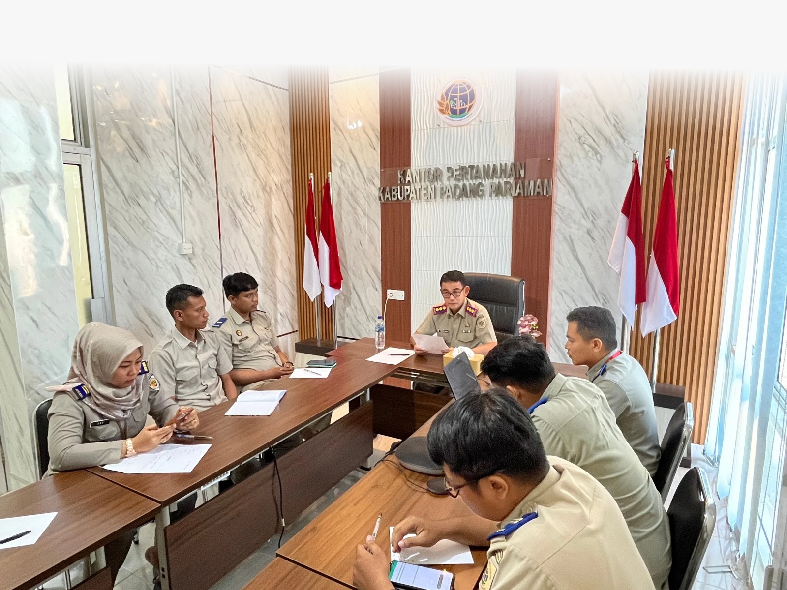 Rapat tersebut dipimpin langsung oleh Kepala Kantor Pertanahan Kabupaten Padang Pariaman, Ahmad Yahdi dan dihadiri seluruh pejabat pengawas, panitia ajudikasi, serta Satuan Tugas (Satgas) PTSL Tahun 2025.