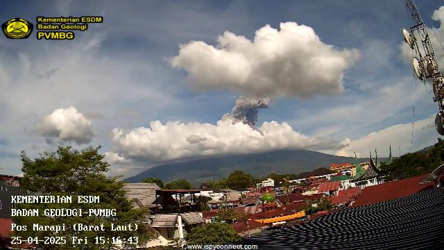BUKITTINGGI, HARIANHALUAN.ID – Gunung Marapi mengalami erupsi pada Jumat, (25/4/2025), pukul 15.13 WIB. Menurut Petugas Pos Pengamatan Gunung Api Marapi di Bukittinggi, Ahmad Rifandi, letusan tersebut memuntahkan kolom abu setinggi sekitar 800 meter di atas puncak atau 3.691 meter di atas permukaan laut.