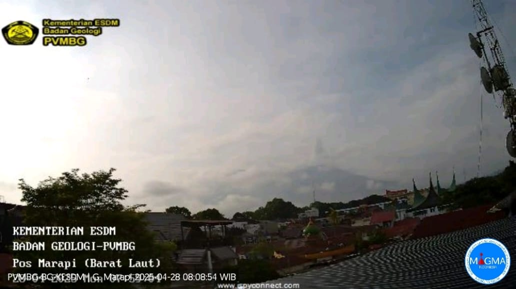 BUKITTINGGI, HARIANHALUAN.ID – Gunung Marapi di Sumatera Barat (Sumbar) kembali mengalami erupsi pada Senin (28/4) pukul 07.58 WIB. Kolom abu terpantau mencapai ketinggian sekitar 500 meter di atas puncak atau 3.391 meter di atas permukaan laut.