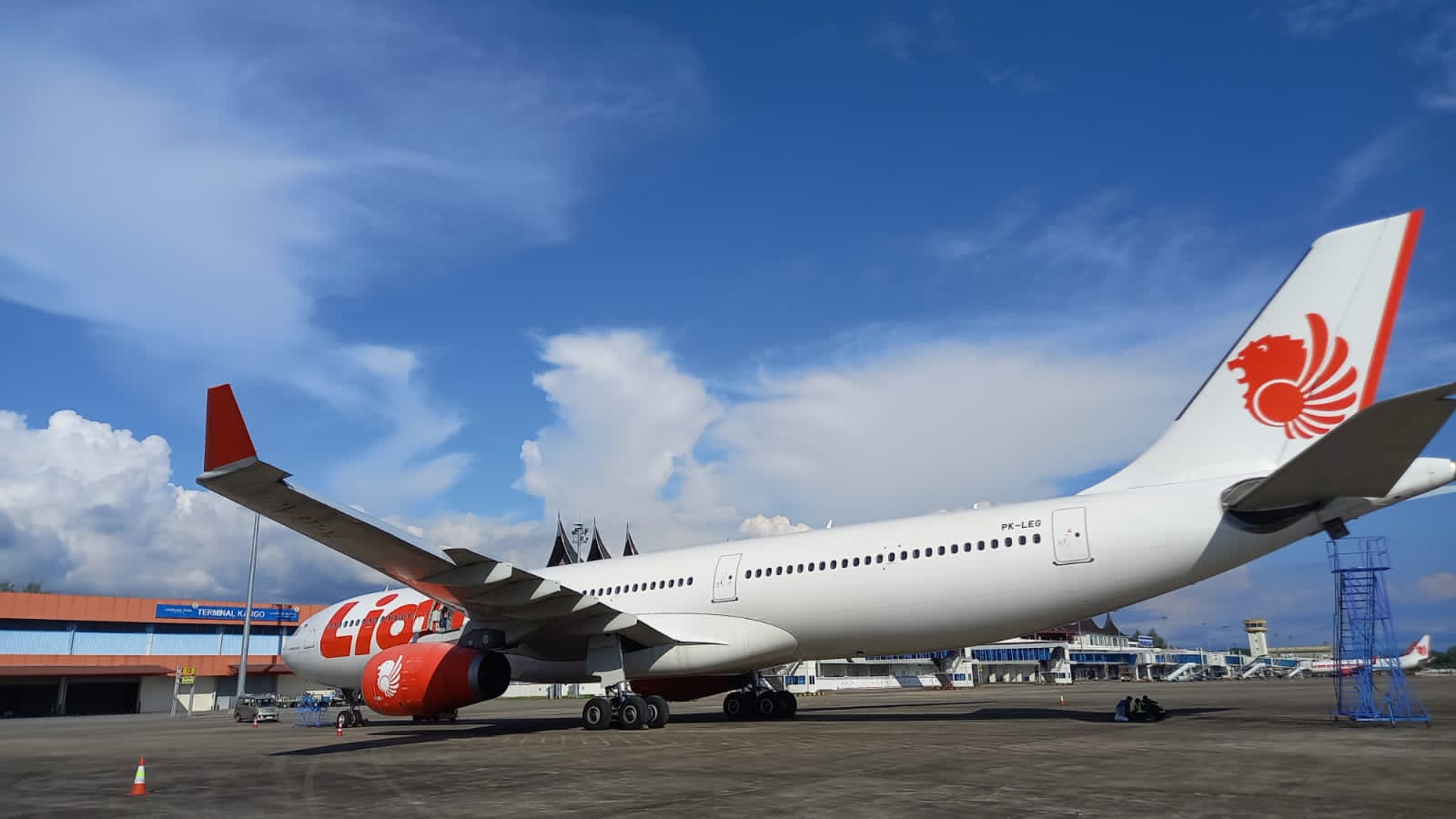 Siap Terbangkan Jemaah Embarkasi Padang, Pesawat Airbus 330 Lion Air Tiba di Padang