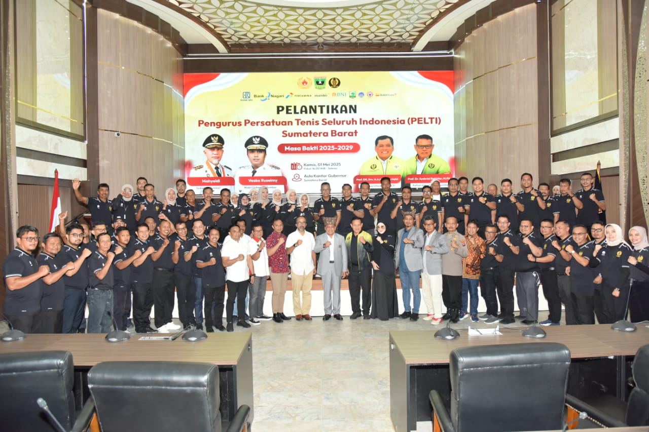 PADANG,HARIANHALUAN.ID- Pengurus Provinsi (Pengprov) Persatuan Lawn Tennis Indonesia (PELTI) Sumatera Barat masa bakti 2025–2029, resmi dilantik Ketum Pengurus Pusat (PP) PELTI, Prof. Dr. Drs. H.A.M. Nurdin Halid di Auditorium Gubernuran Sumbar Kamis (1/5/2025).