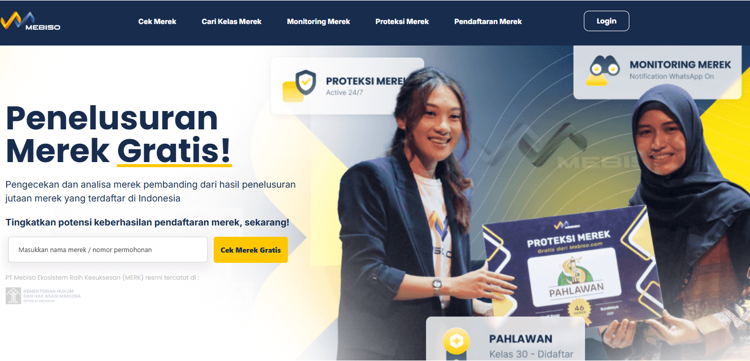 Mebiso menawarkan layanan penelusuran merek yang mudah diakses melalui halaman mebiso.com/cek. Layanan ini dirancang agar pengguna, terutama pelaku UMKM dan pemilik bisnis, bisa mendapatkan informasi awal tentang kelayakan mereknya secara cepat dan akurat.