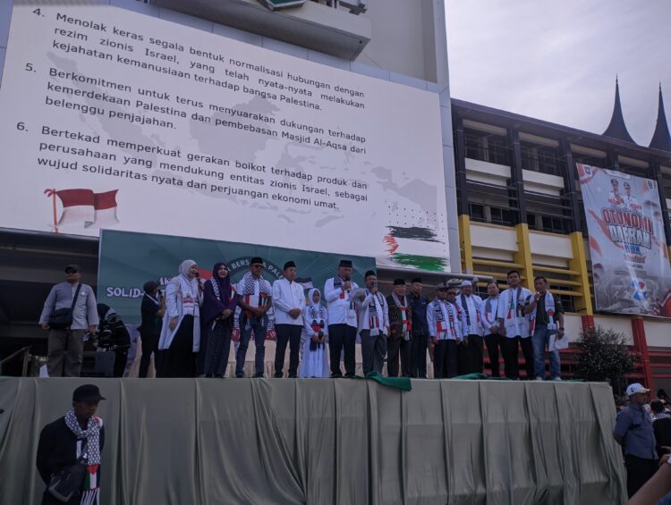 “Sumbar memiliki sejarah panjang dalam memperjuangkan keadilan dan kemanusiaan. Untuk itu, kita di sini berdiri bersama rakyat Palestina, tidak hanya dengan kata-kata, tetapi dengan tekad dan tindakan nyata,” kata Gubernur.