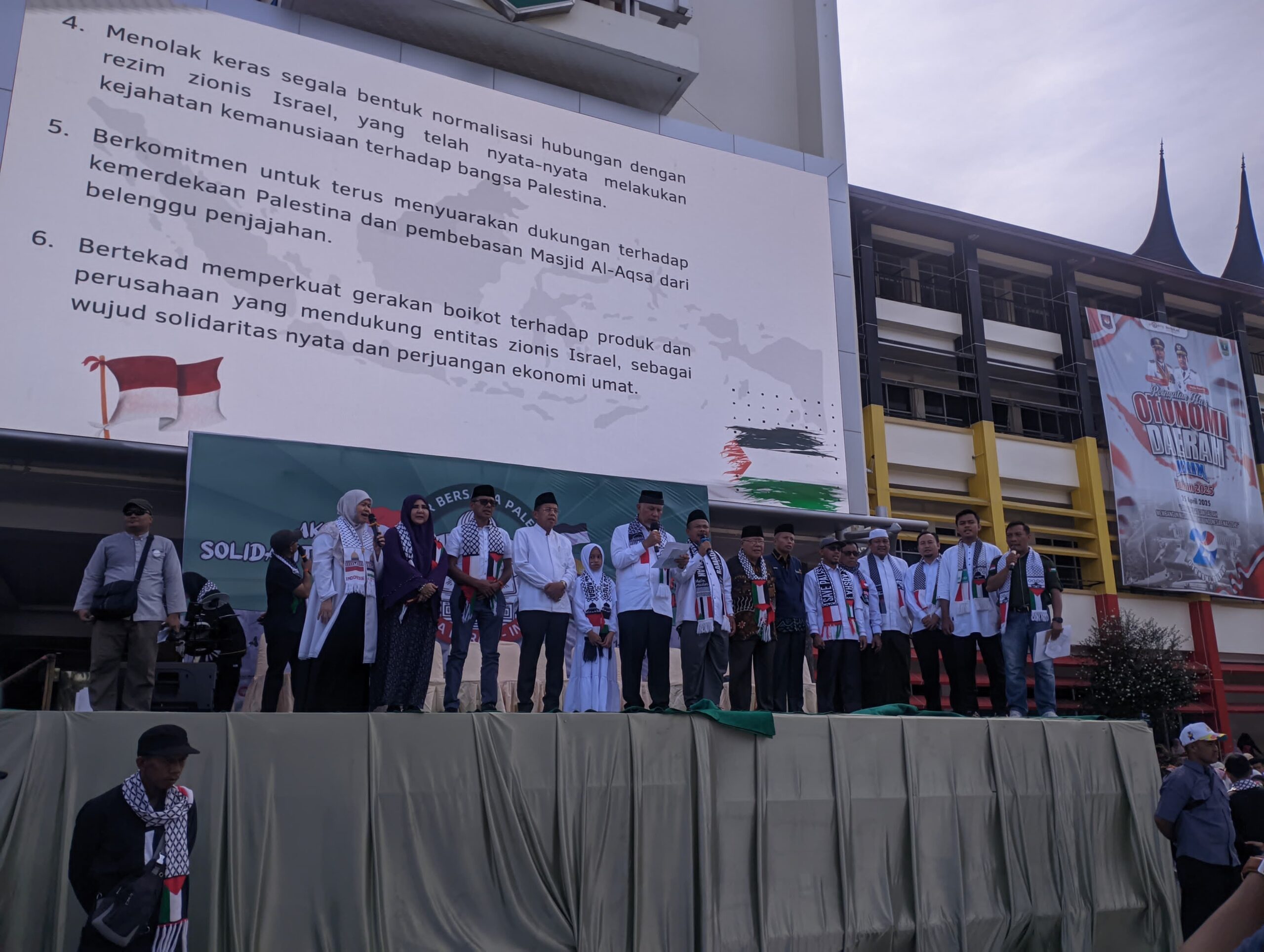 Sepuluh poin sikap tersebut mencerminkan penolakan terhadap segala bentuk penjajahan, kecaman terhadap kekerasan zionis Israel, serta komitmen Sumbar dalam mendukung perjuangan rakyat Palestina melalui aksi kemanusiaan, boikot ekonomi dan doa yang terus mengalir.
