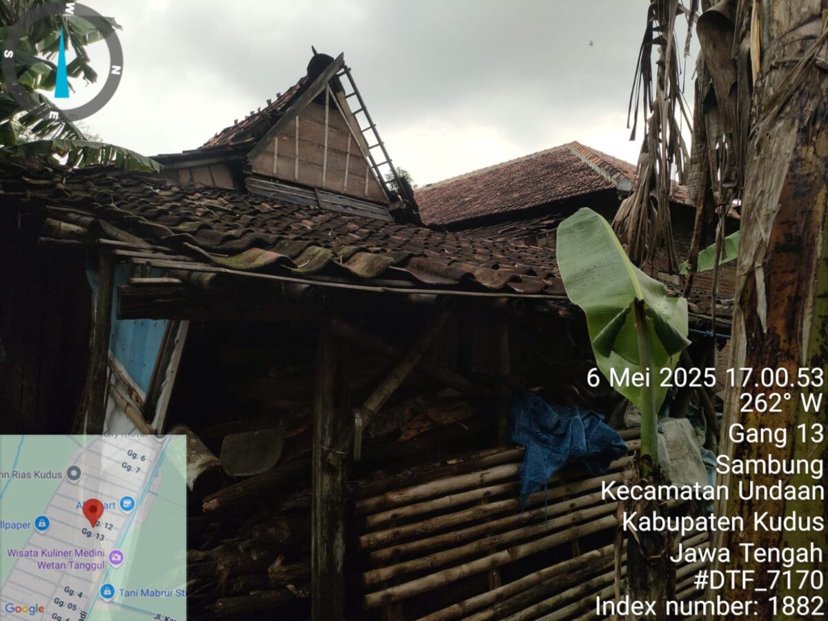 Angin kencang menerjang permukiman warga di Kabupaten Kudus, Provinsi Jawa Tengah, pada Selasa (6/5). Sumber Foto: BPBD Kabupaten Kudu