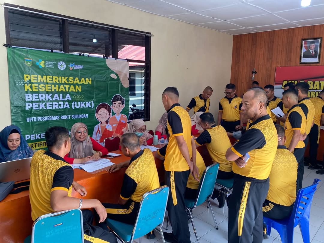 PADANG PANJANG, HARIANHALUAN.ID – Sebanyak 54 personel Batalyon B Pelopor Satuan Brimob Polda Sumbar di Kota Padang Panjang ikuti pemeriksaan kesehatan di Mako Brimob, Jumat (9/5). Pemeriksaan dilakukan petugas Puskesmas Bukit Surungan (Busur).