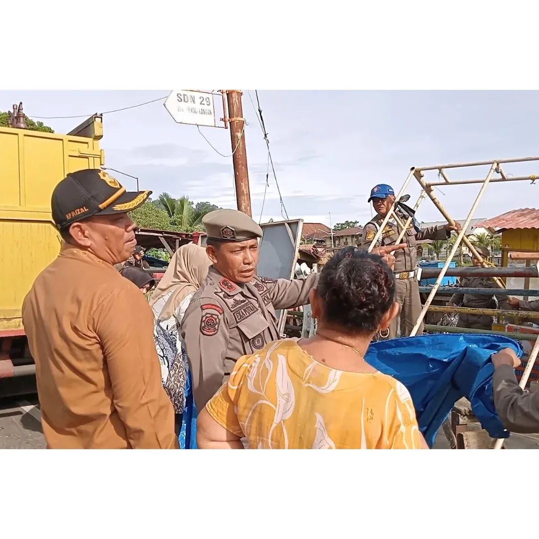 Personil Satpol PP yang dipimpin oleh Kasi Opsdal, Eka Putra Irwandi, S.Sos, MM, melakukan penyisiran di Jalan Batang Harau untuk menertibkan lapak pedagang yang menggunakan fasilitas umum.
