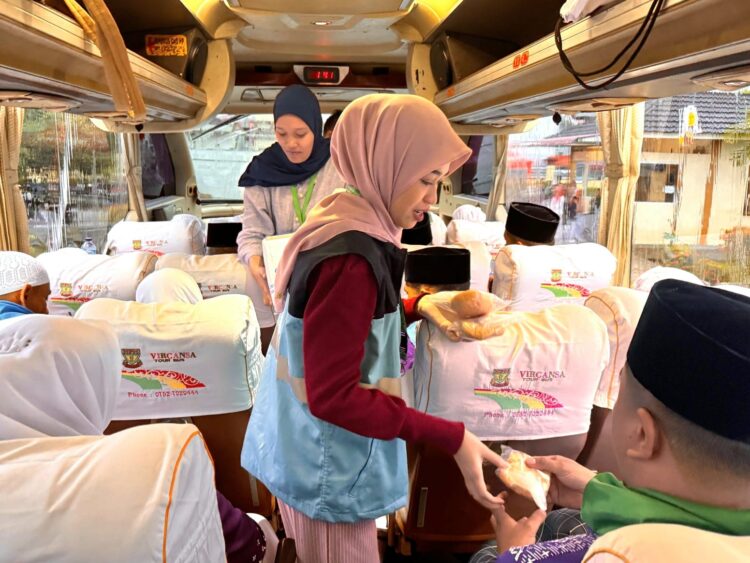 โKarena hujan deras dan jemaah harus menunggu antrian, kami antarkan langsung ke atas bus agar mereka tetap nyaman dan tidak jenuh,โ tambahnya.