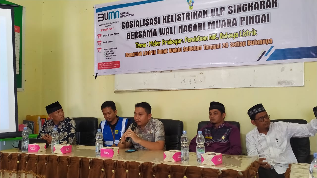 Bersama Camat Junjung Sirih, Wali Nagari, perangkat desa lainnya, serta masyarakat Nagari Muaro Pingai, PLN memberikan sosialisasi terkait Meter Prabayar sebagai salah satu produk PLN, Update Pendataan NIK sebagai program baru PLN, dan sosialisasi Keselamatan Kelistrikan (K2).