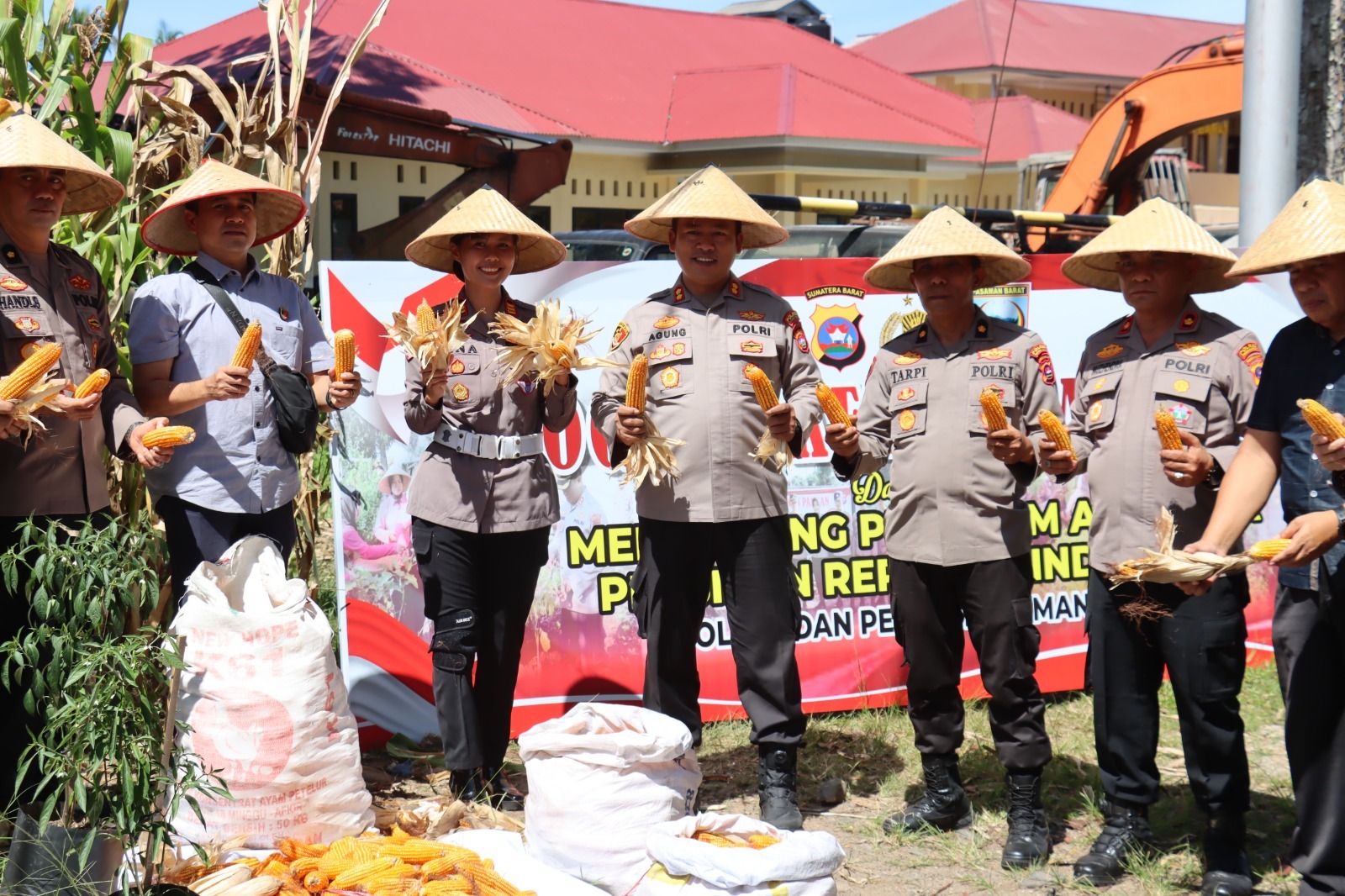 Kapolres Pasaman Barat AKBP Agung Tribawanto, S.Ik turun langsung ke lokasi untuk melakukan panen jagung perdana bersama Wakapolres Kompol Chairul Amri Nasution, S.Ik., M.H serta sejumlah pejabat utama lainnya, Kamis (15/5/2025).