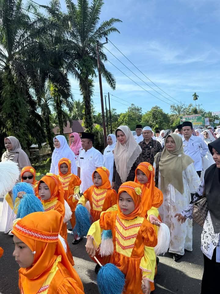 Teks foto : Ketua PKK Kabupaten Pasaman Barat Sifrowati Yulianto mengikuti arak arakan Khatam Al Qur’an se Gunung Tuleh. Osniwati