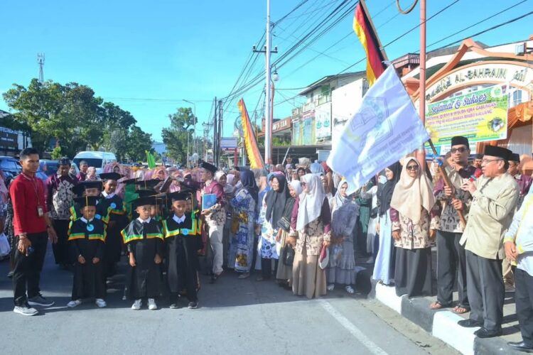 PADANG, HARIANHALUAN.ID – Wakil Wali Kota Padang Maigus Nasir secara resmi melepas Pawai Ta’aruf dalam rangka Khatam Alquran dan Wisuda Iqra gabungan Madrasah Diniyah Takmiliyah Awaliyah (MDTA) dan Taman Pendidikan Alquran (TPQ) se-Kelurahan Rimbo Kaluang, Kecamatan Padang Barat, Minggu (18/5).
