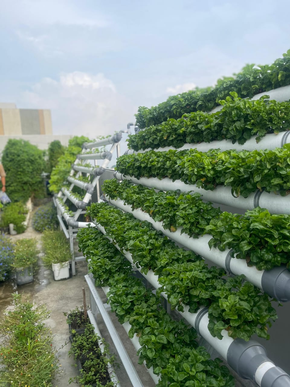 Di bagian atap hotel, kebun hidroponik menjadi pusat budidaya lebih dari 30 jenis sayuran organik.