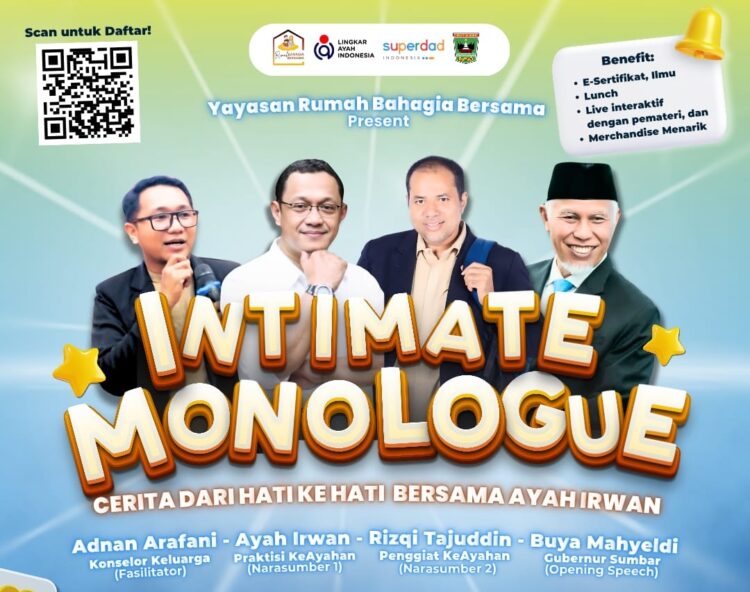 HARIANHALUAN.ID – Yayasan Rumah Bahagia Bersama akan mengadakan dua kegiatan intimate monologue, Minggu (1/6/2025) mendatang bertempat di Ballroom Hotel Rangkayo Basa Padang.
