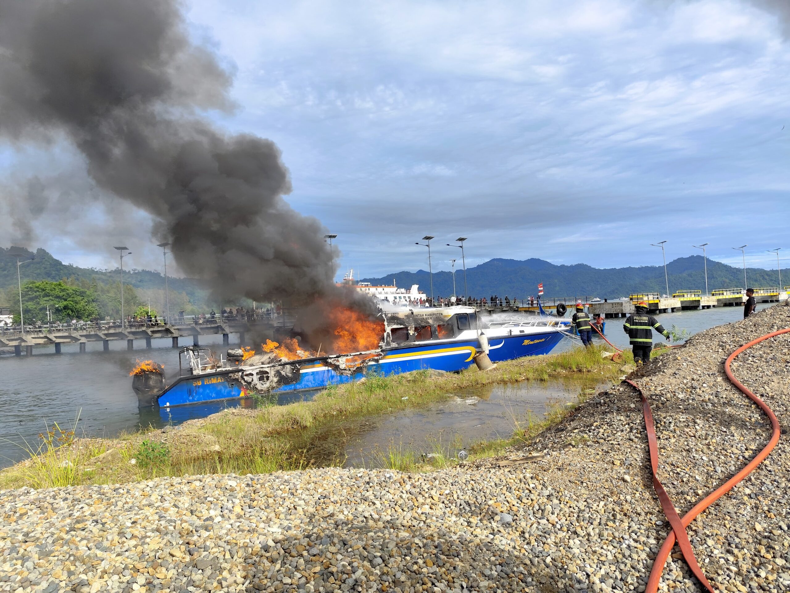 “Kami segera menuju TKP. Informasi sementara, kapal yang terbakar adalah milik pemerintah, namun identitas pasti pemiliknya masih kami telusuri,” kata Iptu Avif.