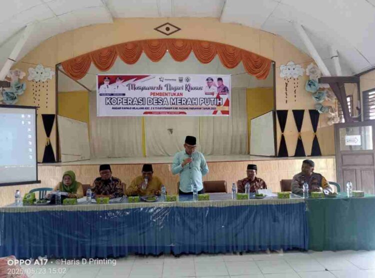 KAYUTANAM, HARIANHALUAN.ID- Pemerintah Nagari Kapalo Hilalang, Kecamatan 2 x 11 Kayutanam, Kabupaten Padang Pariaman, menggelar Musyawarah Nagari Khusus (Musnagsus) untuk pembentukan Koperasi Merah Putih, Jumat (23/5) di Aula SDN 05 Kayutanam.