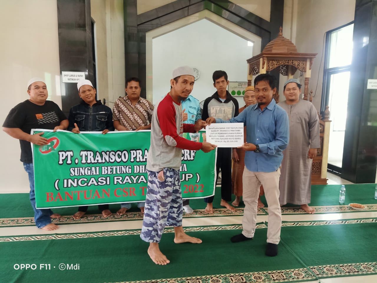 Untuk CSR PT Transco Pratama, ada beberapa bidang salah satunya bidang keagamaan. Khusus untuk Mesjid Taqwa Sungai Betung sudah beberapa kali mendapat bantuan dari PT Transco Pratama karena tidak jauh dari perusahaan.