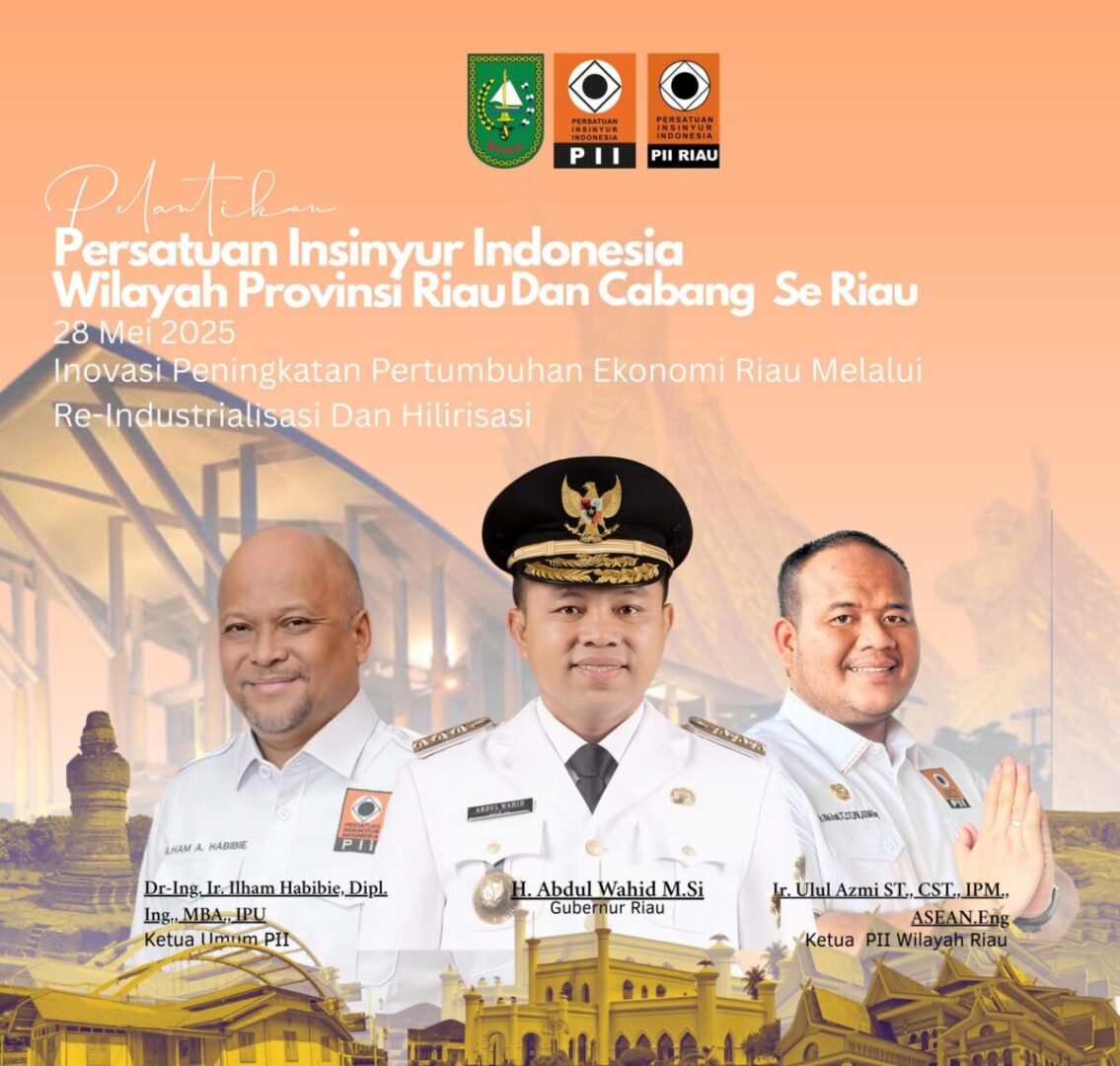 PEKANBARU, HARIANHALUAN.ID — Ketua Umum Persatuan Insinyur Indonesia (PII), Ilham Habibie, dijadwalkan hadir langsung dalam pelantikan Pengurus PII Wilayah Provinsi Riau dan Cabang se-Provinsi Riau untuk masa bakti 2024–2027. Kegiatan ini akan berlangsung pada Rabu, 28 Mei 2025, di Hotel Cititel Pekanbaru mulai pukul 09.30 WIB.