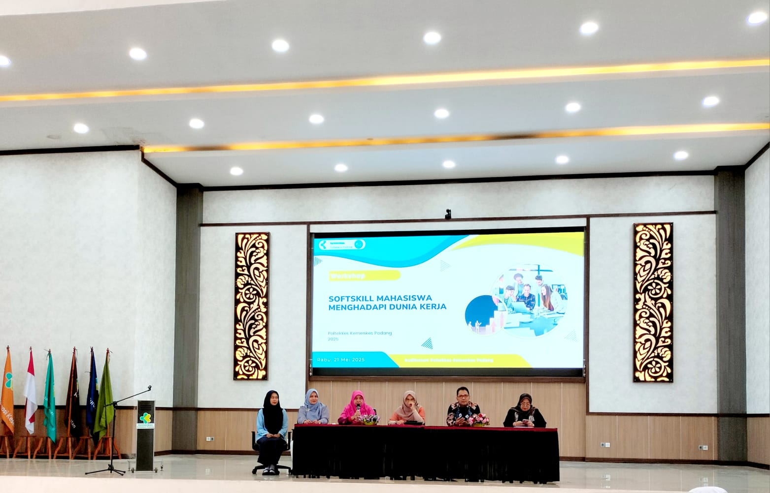 Workshop softskill persiapan mahasiswa dalam menghadapi dunia kerja digelar, Rabu (21/5) di Auditorium Poltekkes Kemenkes Padang dengan menghadirkan dua narasumber.