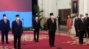 Ada dua menteri dan tiga wakil menteri atau wamen hasil reshuffle Kabinet yang dilantik di Istana Negara, Jakarta, Rabu (15/6).