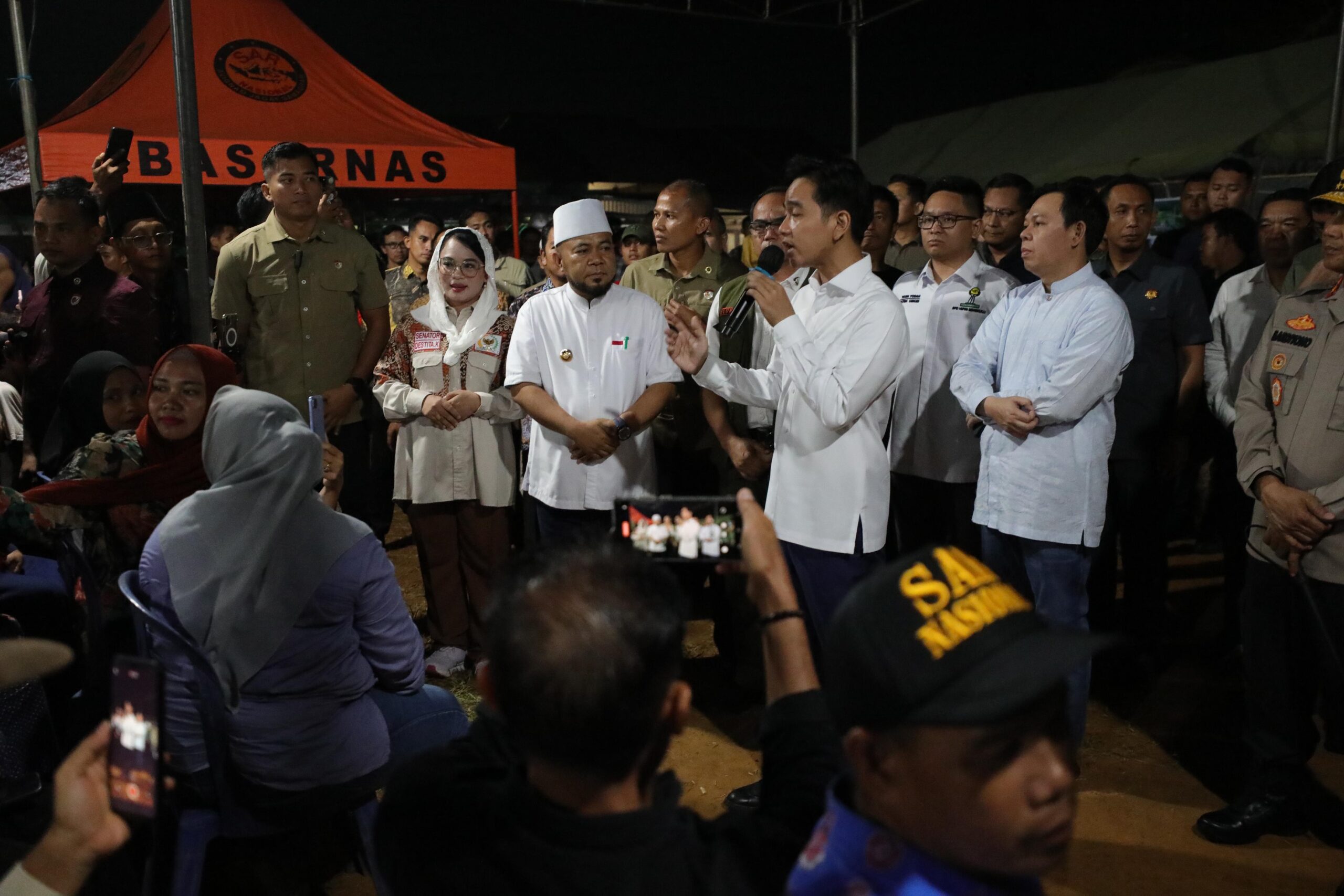 “Bapak-Ibu bagaimana kabarnya hari ini? semakin baik ya. Bapak Presiden Prabowo Subianto nitip salam untuk bapak dan ibu sekalian. Bapak Presiden menyampaikan bela sungkawa dan berharap semoga kita semua yang ada di sini lekas bangkit,” ucap Wapres Gibran disambut tepuk tangan meriah warga.