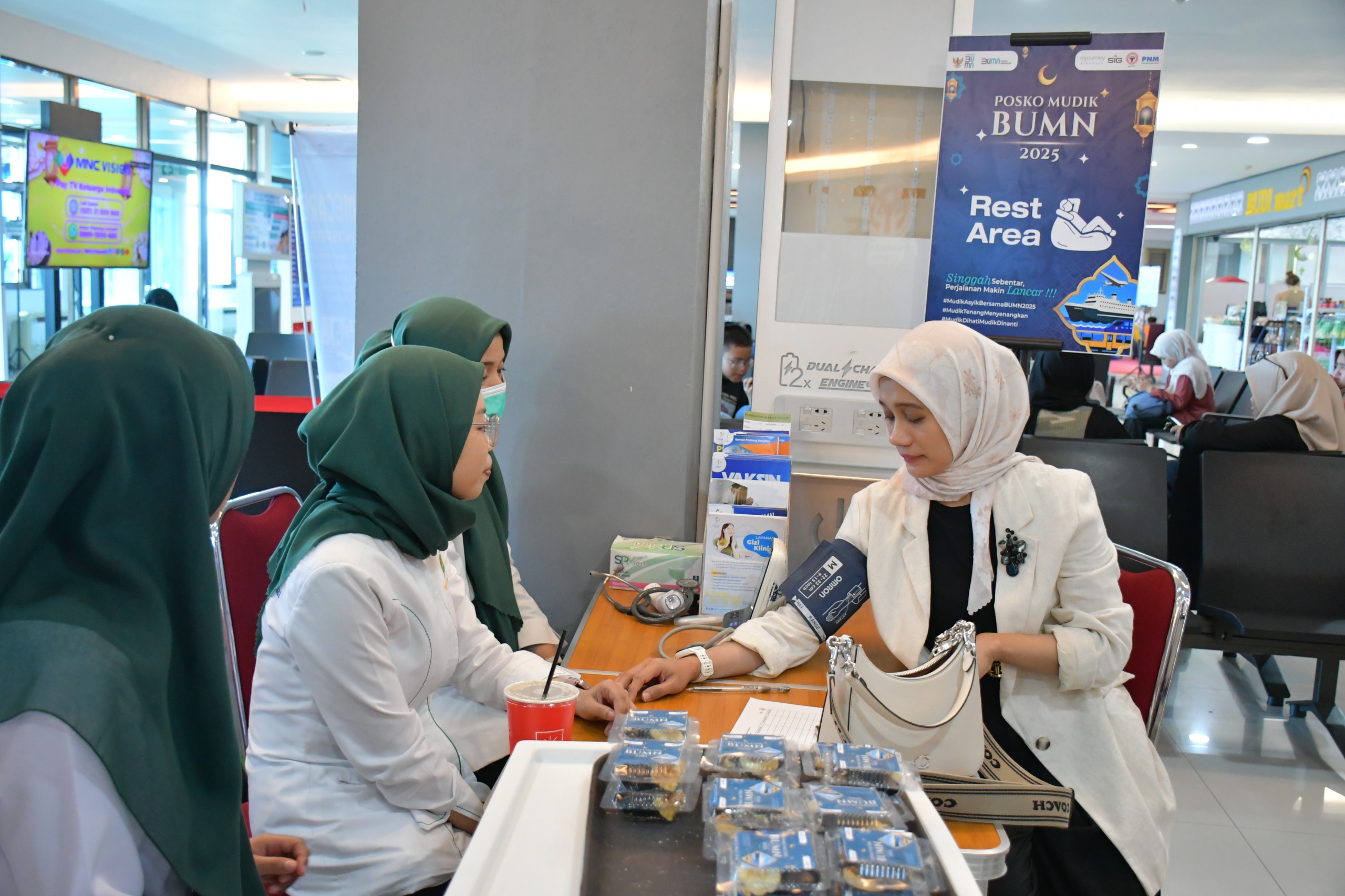“Fasilitasnya sangat bermanfaat, terutama cek kesehatan gratis. BUMN benar-benar hadir melayani kami sambil menunggu jadwal penerbangan,” ujar Yogi, yang datang bersama dua rekannya, Anika Sari dan Abdi Harikardo.